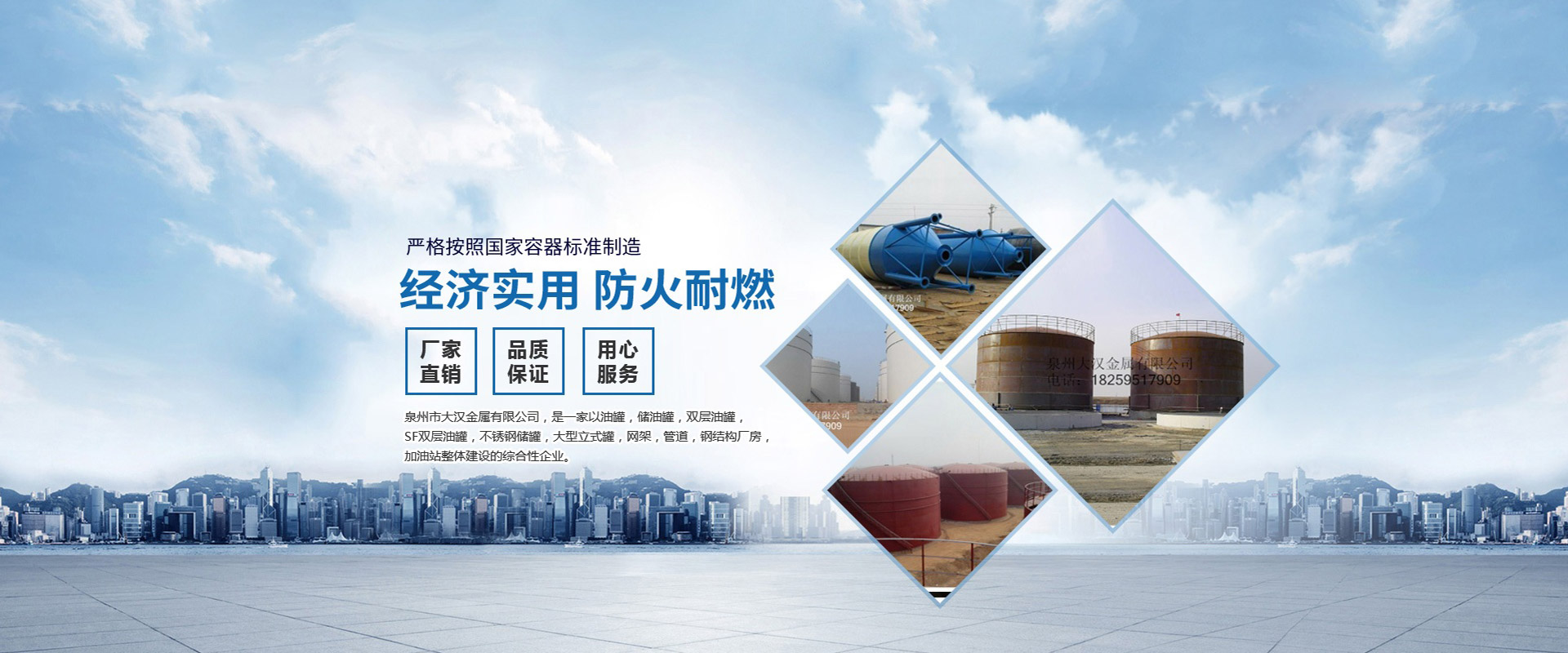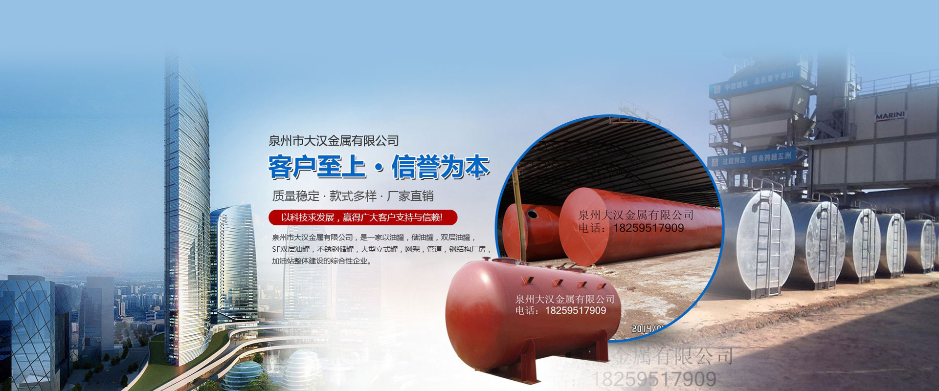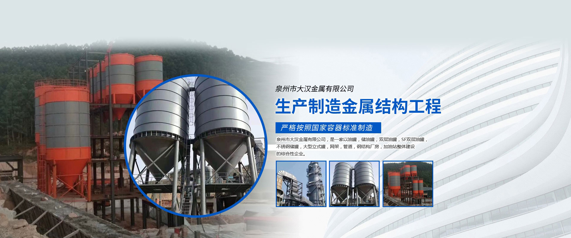 泉州市大漢金屬有限公司,是一家以油罐、儲(chǔ)油罐、雙層油罐、SF雙層油罐、不銹鋼儲(chǔ)罐、大型立式罐、網(wǎng)架、管道、鋼結(jié)構(gòu)廠房、加油站整體建設(shè)的綜合性企業(yè)。本公司以技術(shù)人員、施工經(jīng)驗(yàn)豐富的工程隊(duì)、自動(dòng)化設(shè)備、擁有鋼結(jié)構(gòu)建筑、螺栓球網(wǎng)架設(shè)計(jì)安裝技術(shù)力量,嚴(yán)格按照國(guó)家容器標(biāo)準(zhǔn)制造,是一家產(chǎn)品開發(fā)并生產(chǎn)各種壓力容器和制造金屬結(jié)構(gòu)工程,化工石油工程安裝的大型企業(yè)。近多年來(lái),以質(zhì)量穩(wěn)定、客戶至上、信譽(yù)為本,以科技求發(fā)展,贏得廣大客戶支持與信賴。